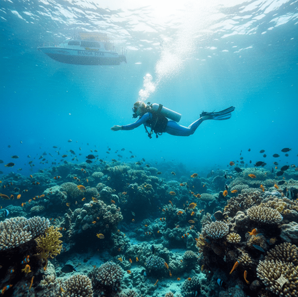 There’s a moment when you leave the shore behind when the hum of the world fades, replaced by the rhythm of bubbles and the whisper of the sea.